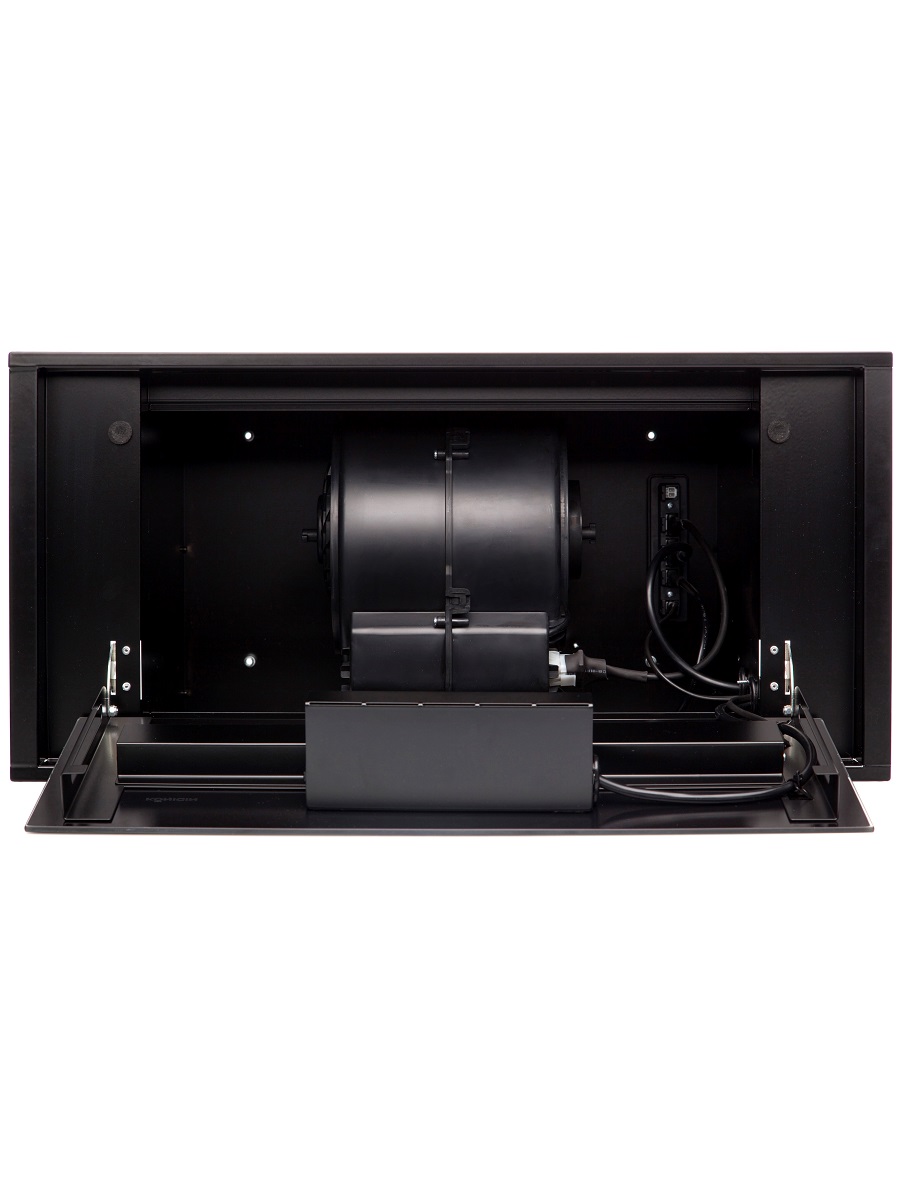 + Вытяжка полностью закрывает нижний горизонт шкафчика и может монтироваться вместо нижней полки